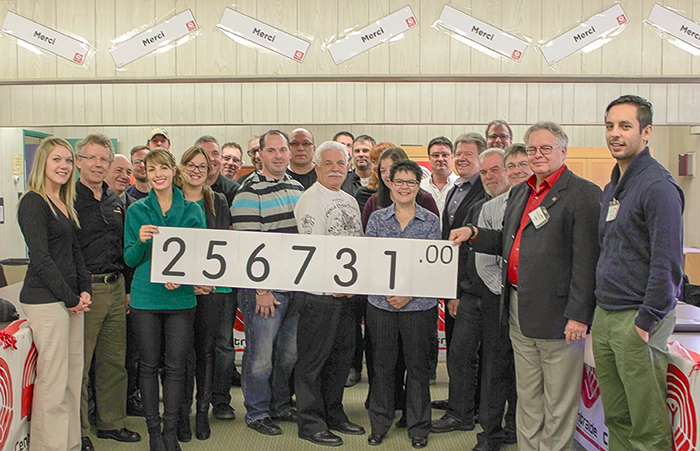 CONTRECOEUR, le 9 janvier 2015 – Grâce à un effort concerté des travailleurs, des retraités, des syndicats et de la direction d’ArcelorMittal Montréal, la campagne Centraide 2014 de l’entreprise a permis d’atteindre des sommets inégalés. Un don total de 256 731 $ sera partagé entre Centraide du Grand Montréal et Centraide Richelieu-Yamaska afin de subvenir aux besoins des communautés d’accueil de l’entreprise. Au terme de cette campagne, ce seront 778 donateurs, soit près d’un employé actif sur deux (49 %) d’ArcelorMittal Montréal qui auront versé un don à Centraide, une statistique impressionnante.