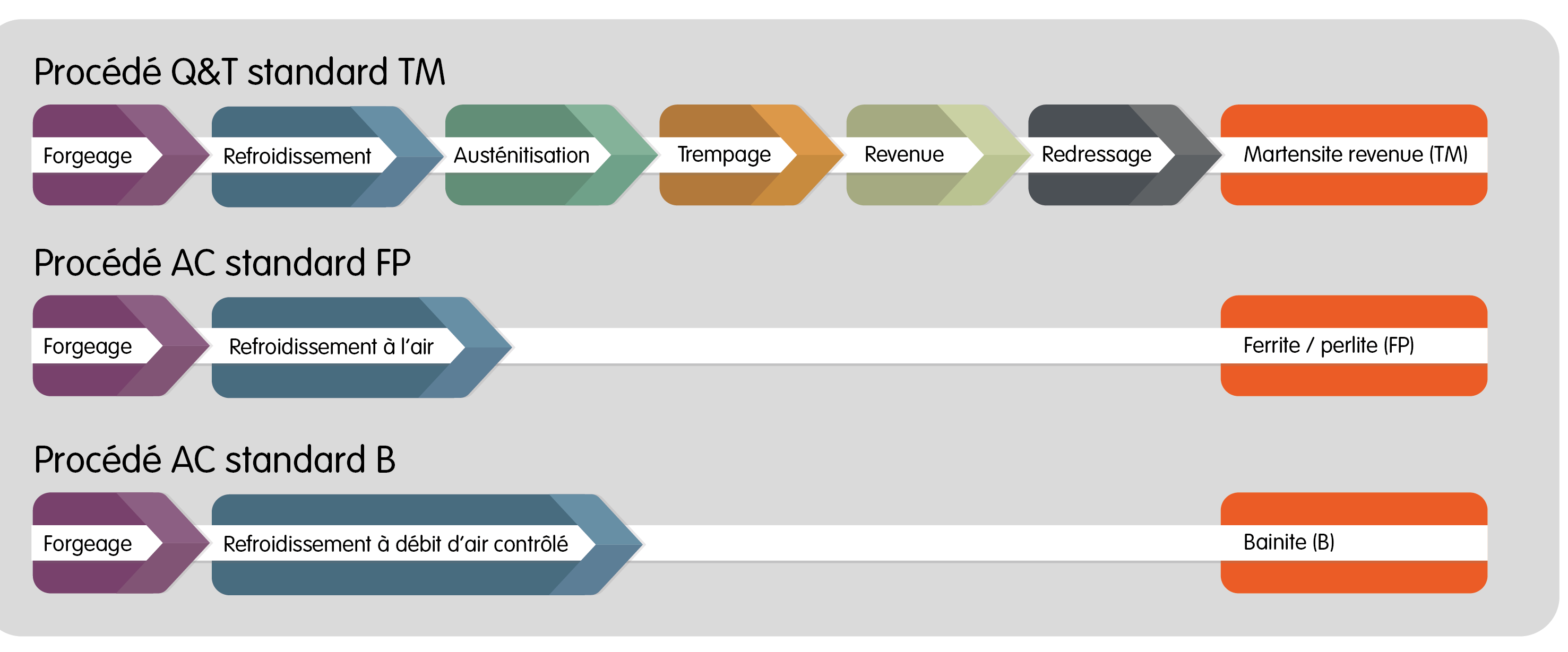 • Aucun traitement thermique (uniquement un refroidissement à l’air après la forge à chaud)