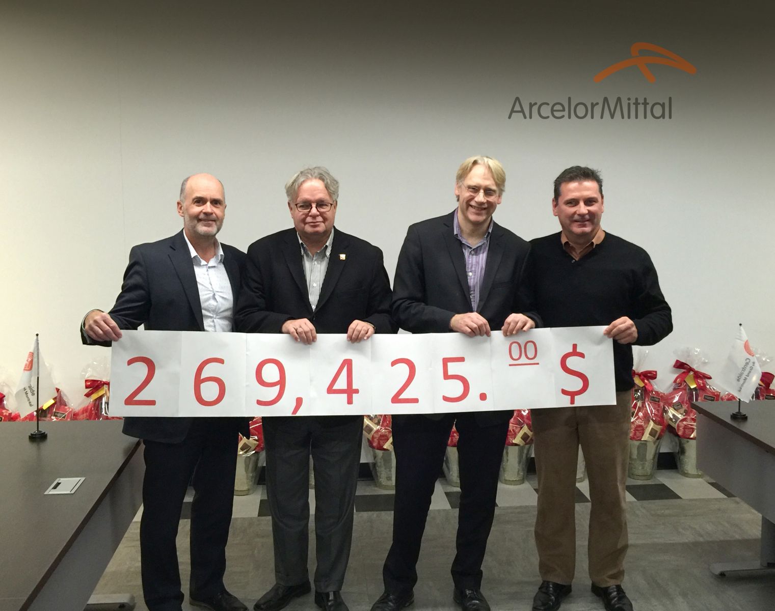 CONTRECOEUR, le 2 décembre 2016 – La campagne Centraide 2016 d’ArcelorMittal Produits longs Canada, co-présidée par l’entreprise et le Syndicat des Métallos-FTQ, a permis d’amasser 269 425 $ pour subvenir aux besoins des communautés. La somme, qui a été recueillie auprès des travailleurs, des retraités, des syndicats et de la direction, sera majoritairement versée aux deux régions Centraide qui ceinturent nos principales installations au Québec, soit Centraide du Grand Montréal et Centraide Richelieu-Yamaska.