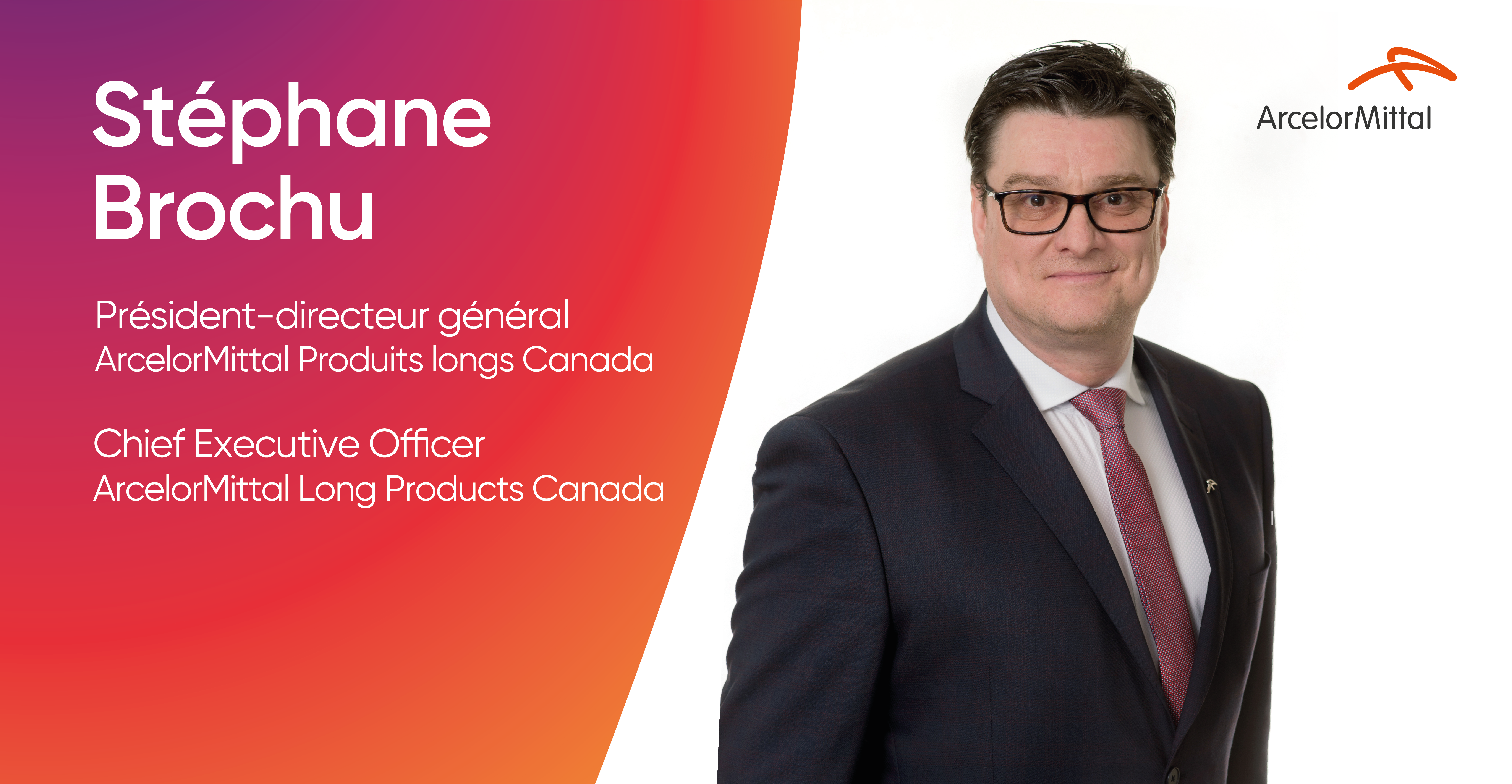 Stéphane Brochu, directeur général d’ArcelorMittal et directeur des opérations d’ArcelorMittal Produits Longs Canada est nommé vice-président d’ArcelorMittal et Président-directeur général d’ArcelorMittal Produits Longs Canada à compter du 1er novembre 2022. Il succèdera à François Perras, vice-président d’ArcelorMittal et Président-directeur général d’ArcelorMittal Produits Longs Canada, qui a annoncé son départ afin de poursuivre une nouvelle opportunité de carrière. Stéphane Brochu se rapportera à John Brett, vice-président exécutif d’ArcelorMittal et président-directeur général d’ArcelorMittal North America.