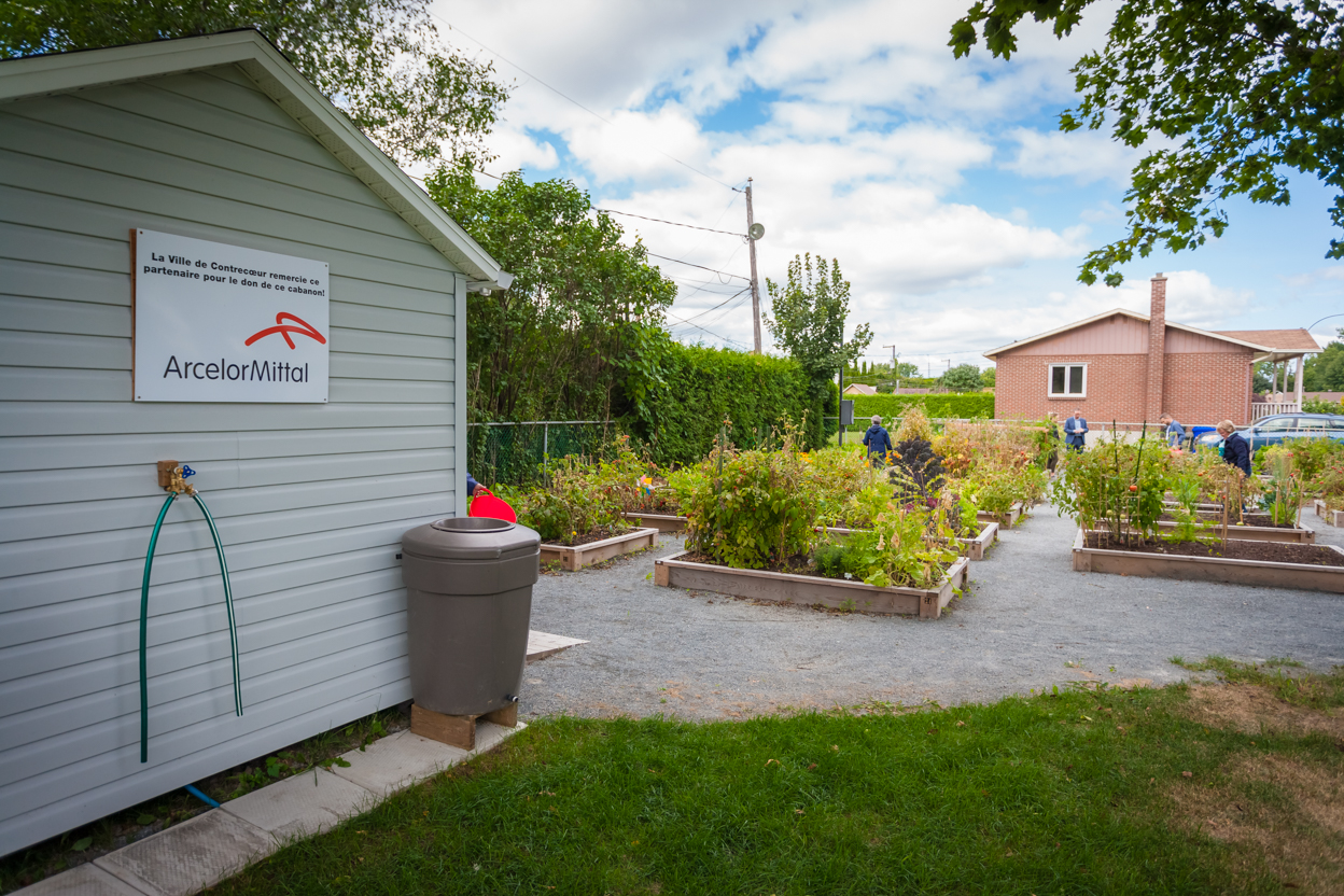 En compagnie de notre président-directeur général, Sujit Sanyal (au centre sur la photo ci-dessus), et de membres de notre direction locale, nous avons visité au début septembre le jardin communautaire de Contrecoeur « Les bonbons légumes » où des jardiniers amateurs jeunes et moins jeunes complètent leur première année d’activité. Aubergines, kale, brocoli, fraises et autres pousses ont été à l’honneur cet été. ArcelorMittal Produits longs Canada a contribué à l’établissement du jardin en versant 3 000 $ qui ont servi à l’achat d’un cabanon pour l’entreposage des matériaux et outils des participants. Un apport concret pour la santé et l’environnement dans notre communauté. Le jardin est situé au parc Henri-Lacroix au 4550, rue L’Heureux. (Crédit photos : Régis Boutet Photographe)